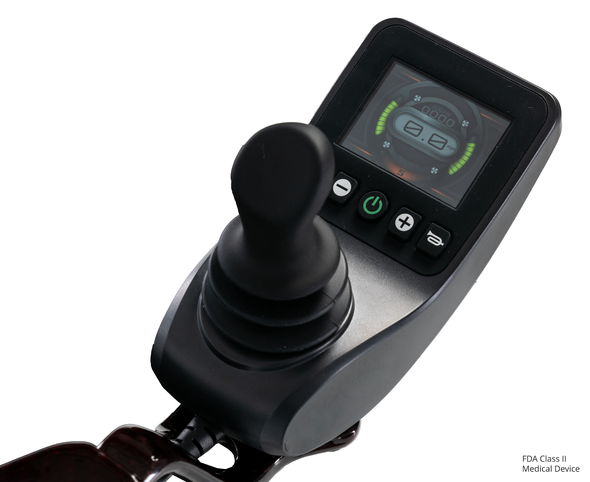 Equipped with full front suspension, the Jazzy Carbon 27 provides a smooth, stable ride across a variety of surfaces. The quick-disconnect LCD joystick features a digital display, USB-C charging port, and puddle light for added convenience and visibility. A 12 Ah airline-compliant lithium battery delivers a driving range of up to 9.3 miles, while standard features like a seat cushion, adjustable lap belt, mesh cup holder, and under-seat storage ensure comfort and practicality for everyday mobility and travel.