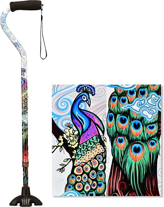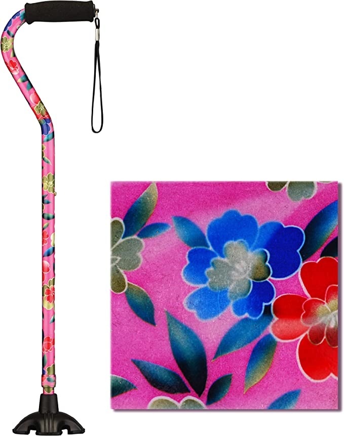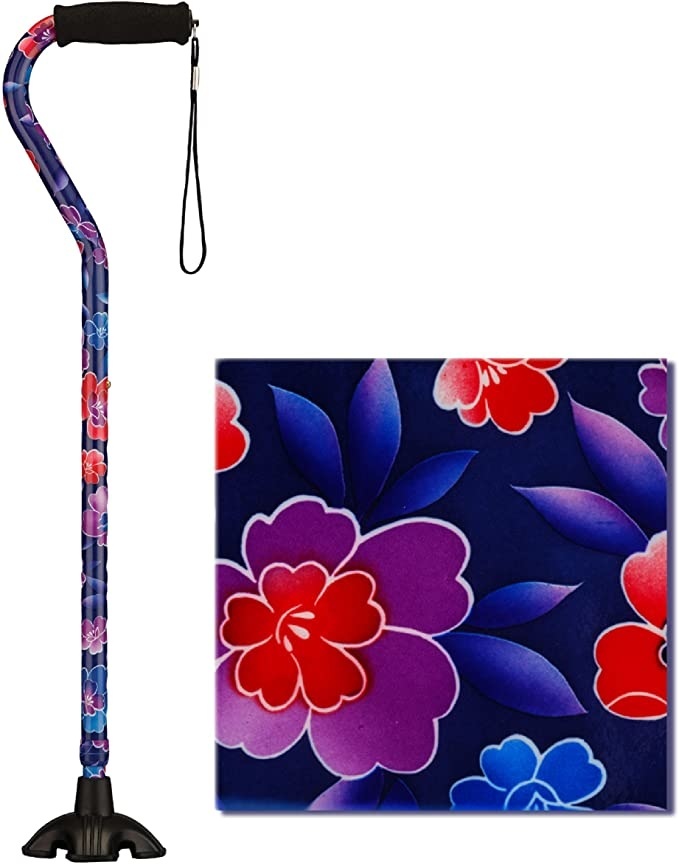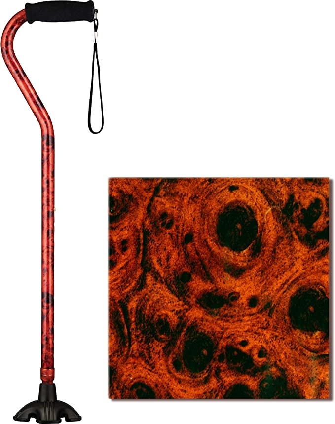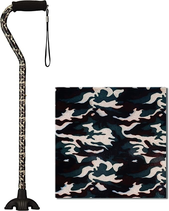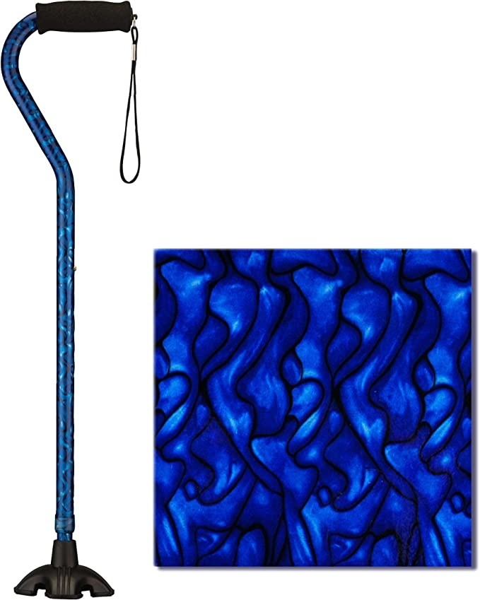 The offset shape provides excellent support for the wrist, the soft grip is comfortable for the hands and the strap is super convenient. The Quad Tip base stands the SugarCane upright on flat surfaces, provides great stability, traction and pivot on uneven and sloped terrain, and helps to reduce strain on the hand and wrist. And because style matters, the SugarCane is beautiful and stays beautiful with gorgeous fade and chip resistant patterns.