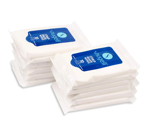 The most convenient CPAP Mask Wipes in the market brought to you by Snugell™. Our 100% soft cotton Alcohol-free wipes are a fast and easy way to clean your CPAP mask, tube and devices. No more washing and rising, our premium Lint-free CPAP Mask Wipes will help you remove grease and residue build-up from the comfort of your bed.